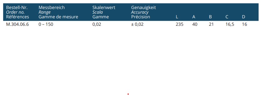 Uhrmessschieber 0-150mm mit Feineinstellung | Ablesung 0,02mm M.304.06.6