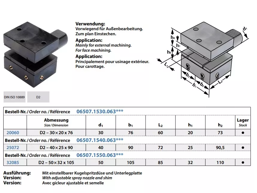 - MIt einstellbarer Kugelspritzdüse und Unterlegplatte