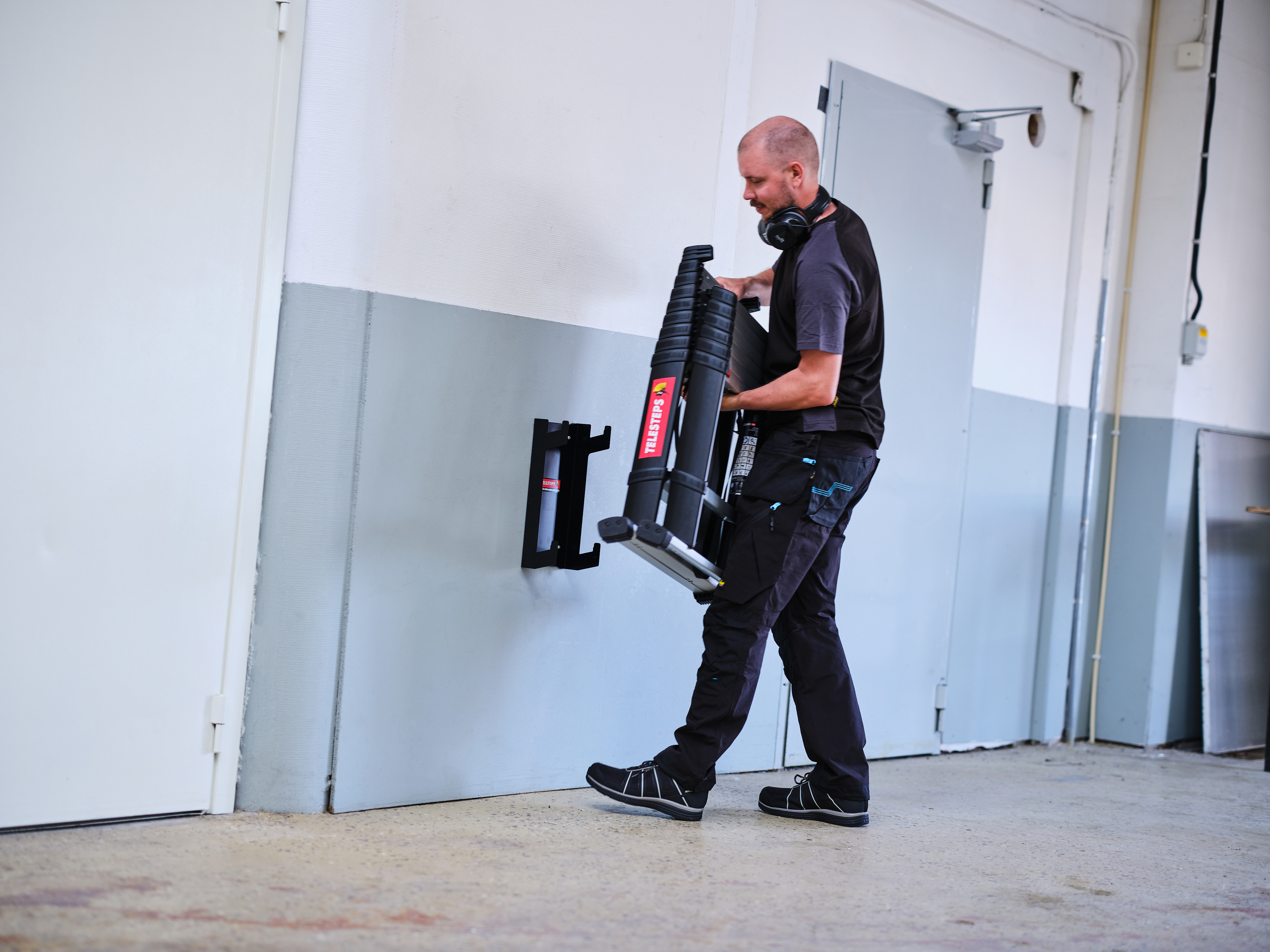 - Einfache Wandmontage: Platzsparende Lagerung der Leiter.