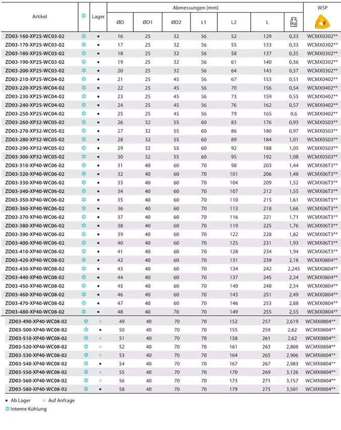 - Optional mit Adapter für die Innenkühlung bei konventionellen Maschinen.