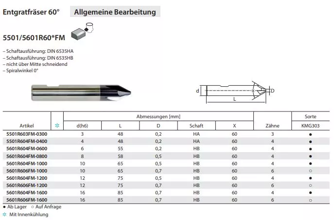 VHM Entgratfräser 60°