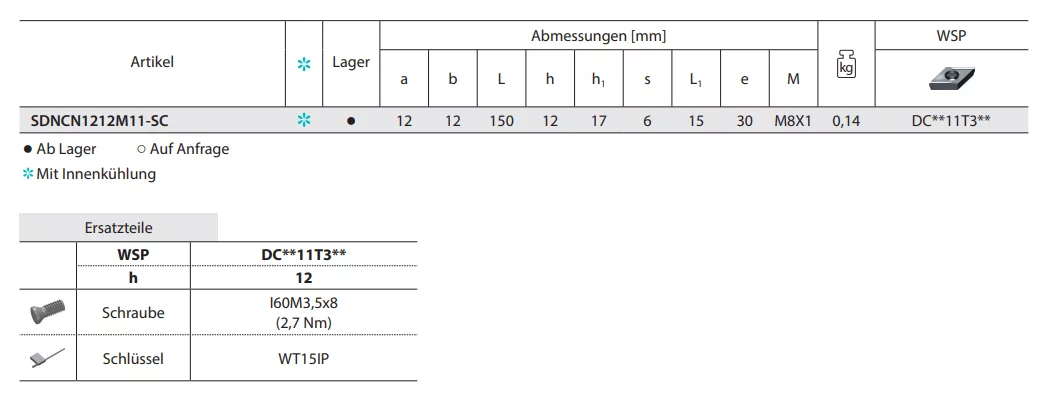 Produktinformationen "ZCC-CT ISO Klemmdrehhalter SDNCN-SC Kr: 62°30' Platte DC**"