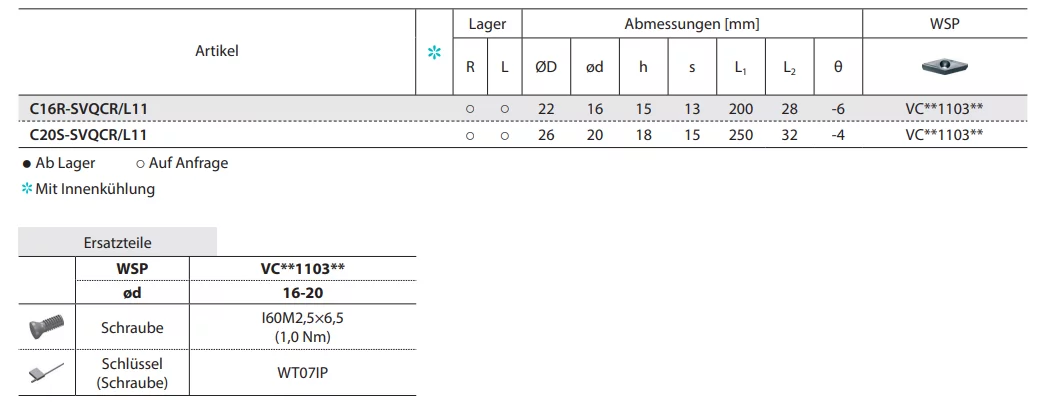 Produktinformationen "ZCC-CT ISO Klemmdrehhalter SVQCR/L Kr: 107°30' Platte VC**"