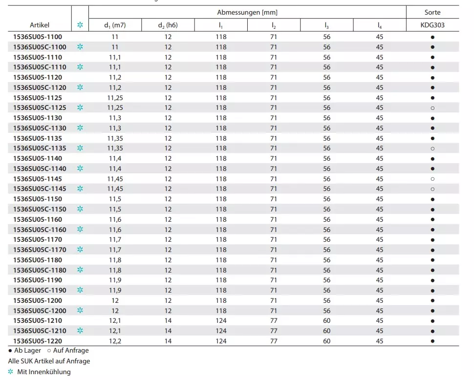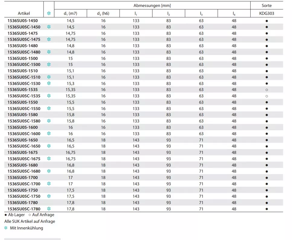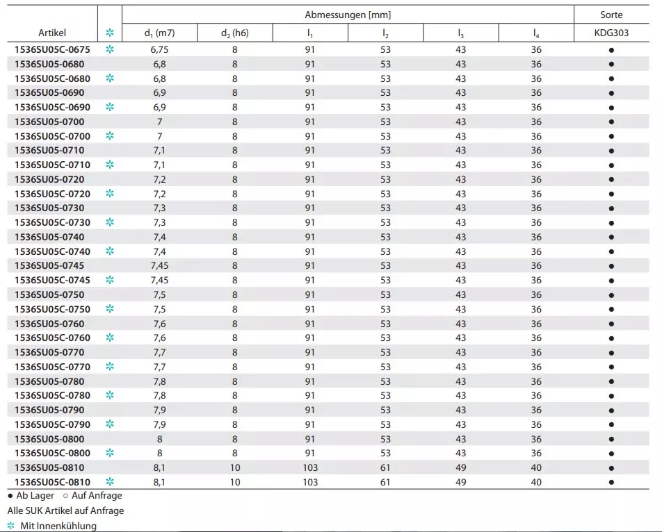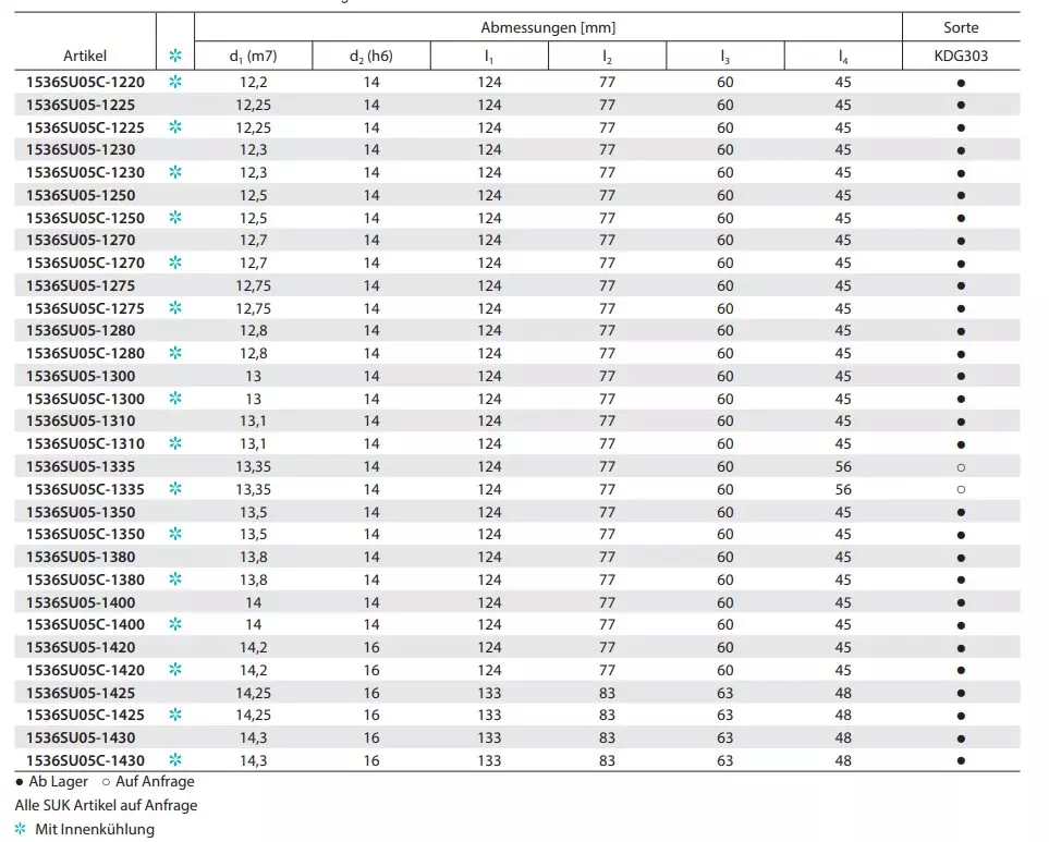- Ausführung: Mit und ohne Innenkühlung (IK) erhältlich