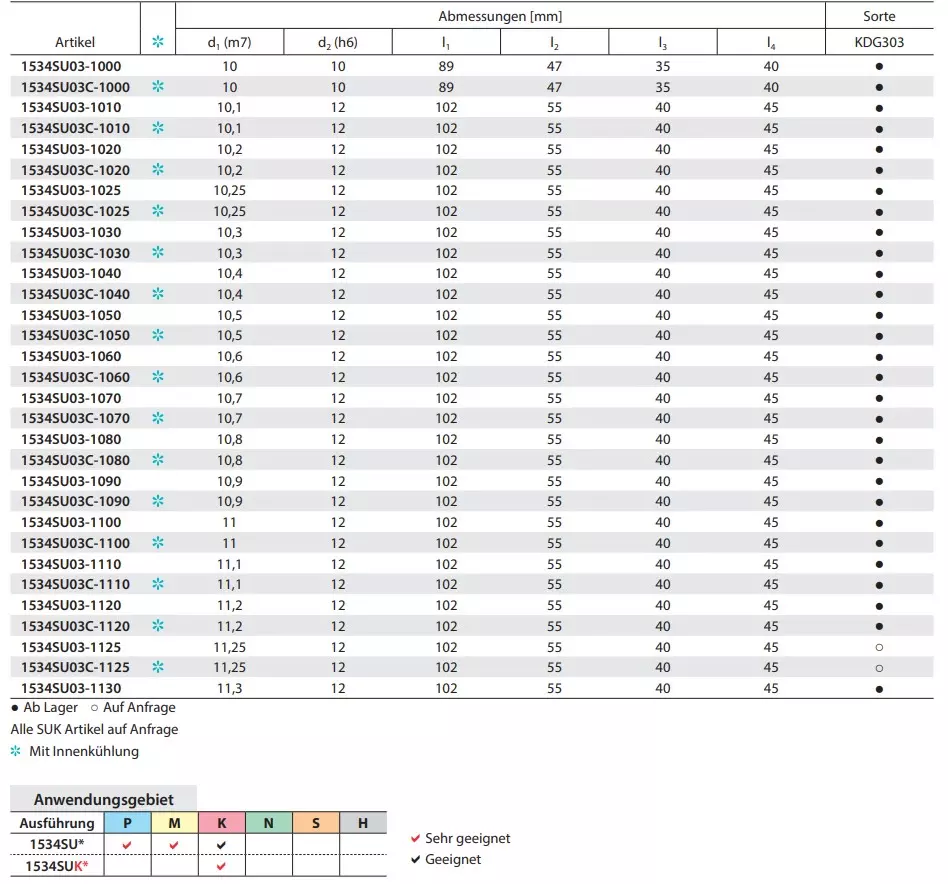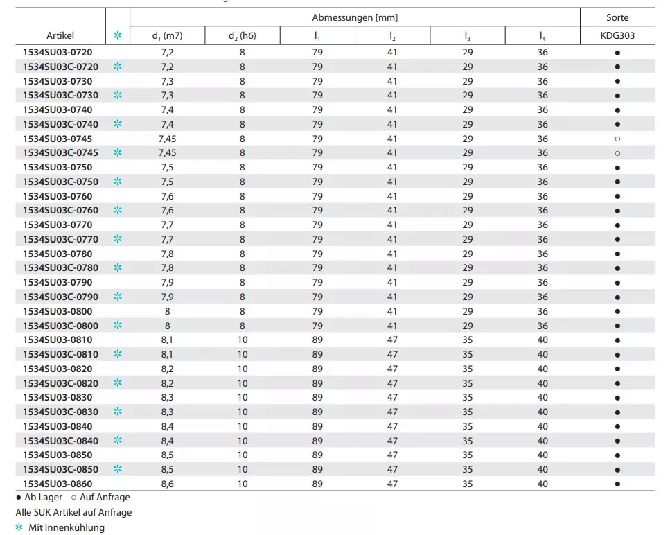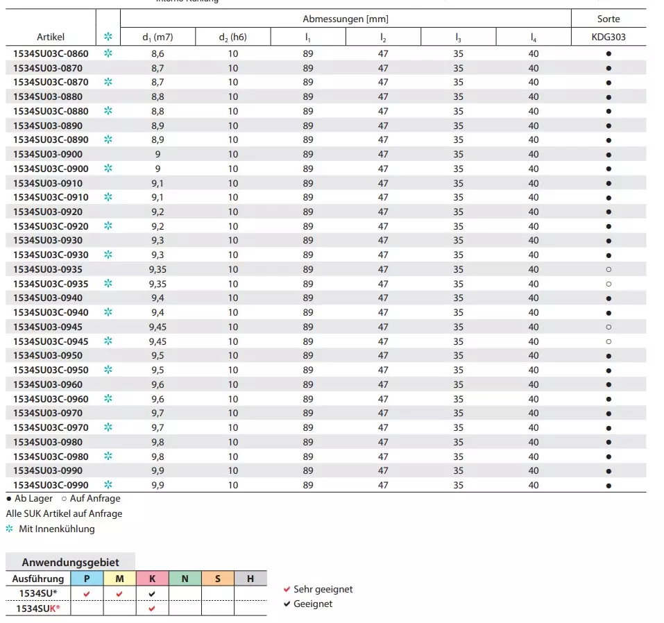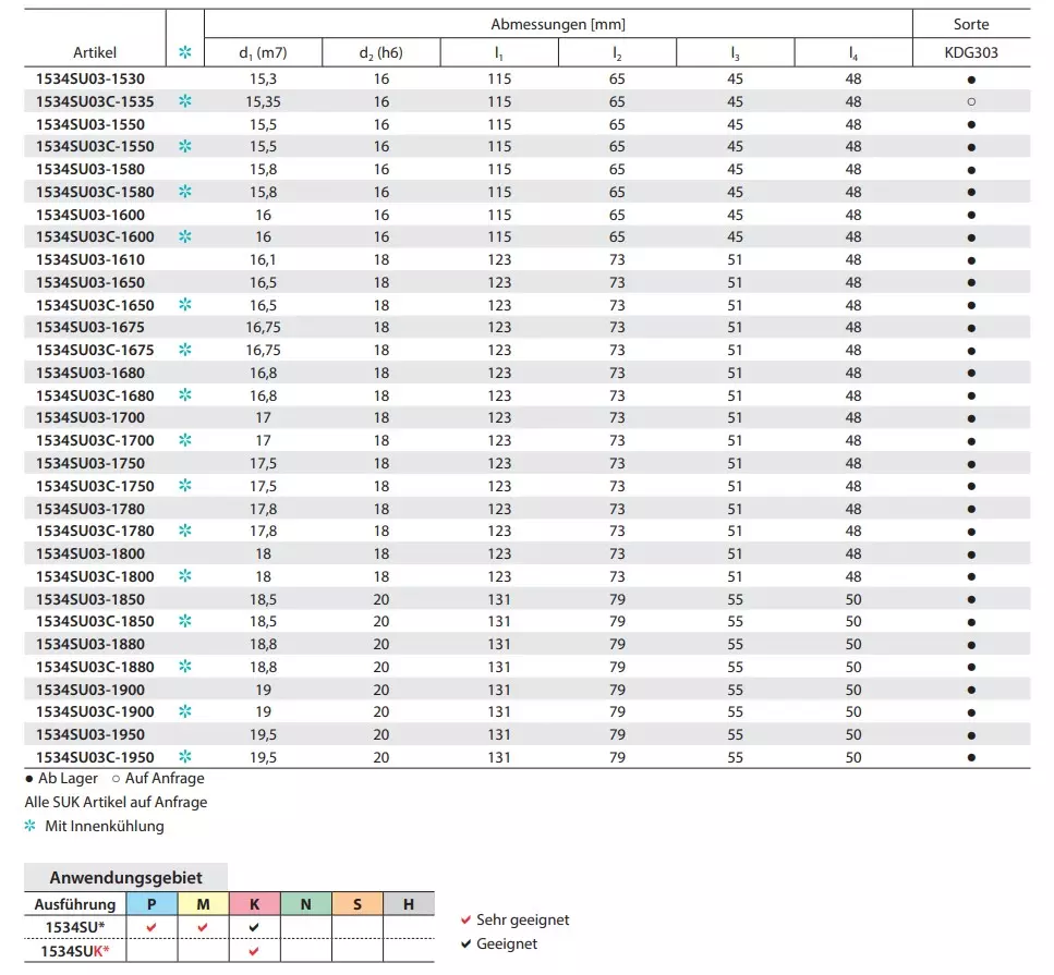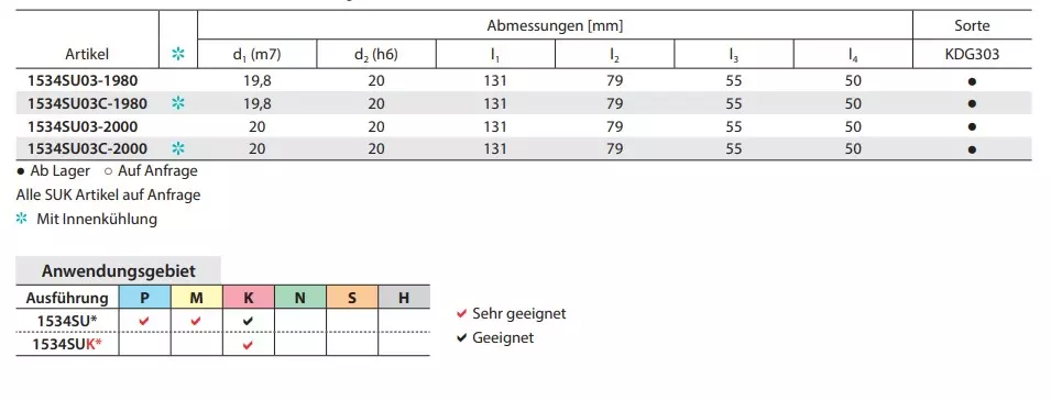 - Innenkühlung: Mit und ohne Innenkühlung erhältlich