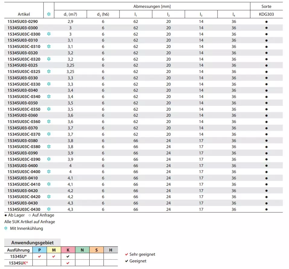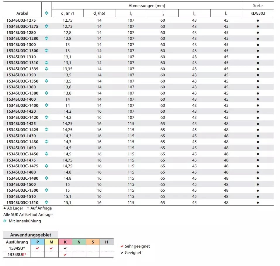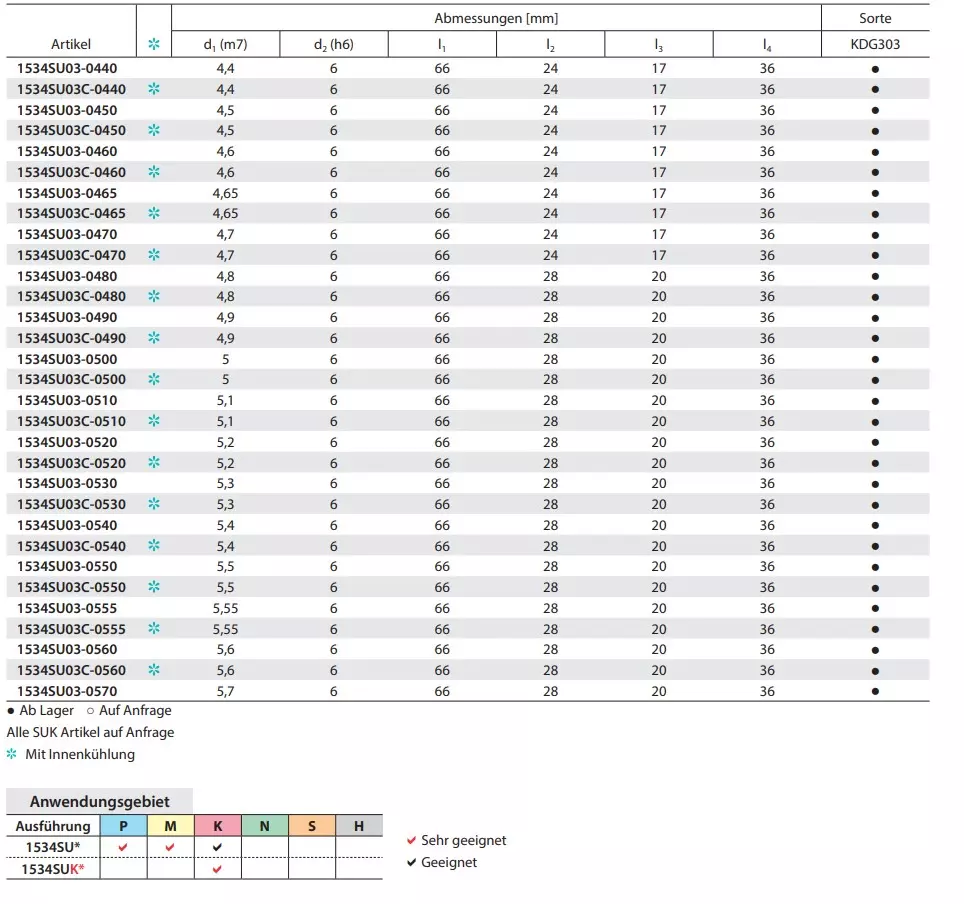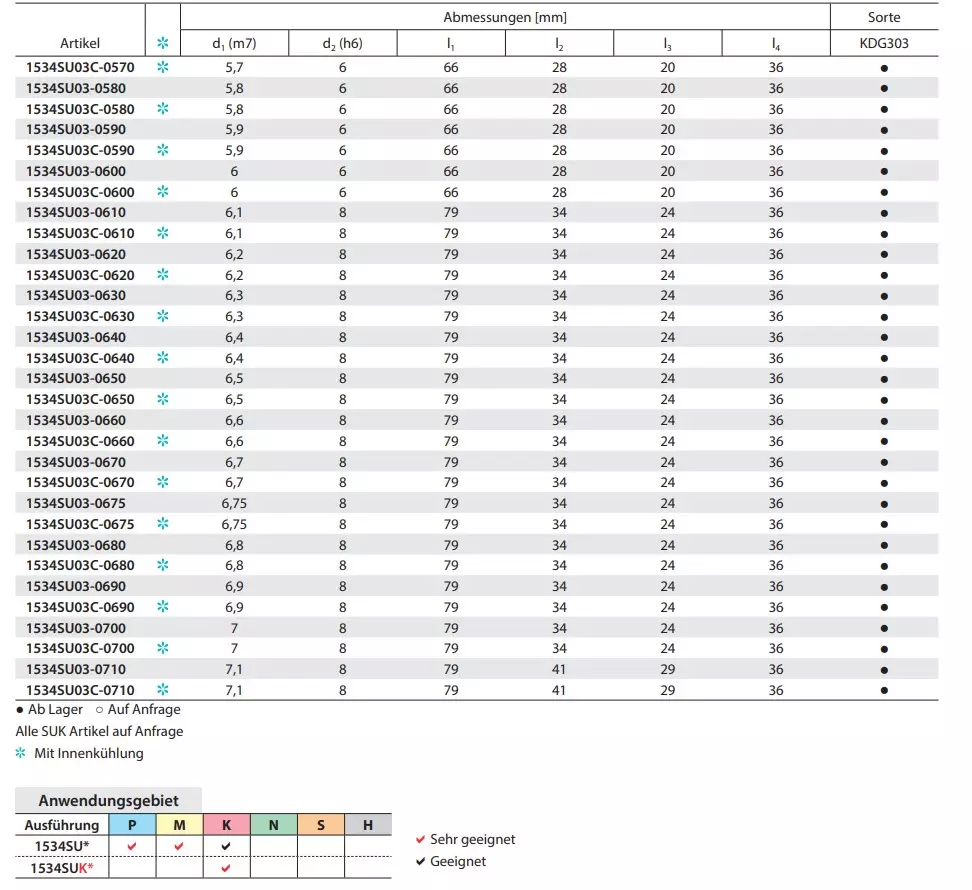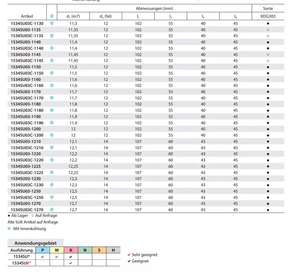 - Innenkühlung: Mit und ohne Innenkühlung erhältlich