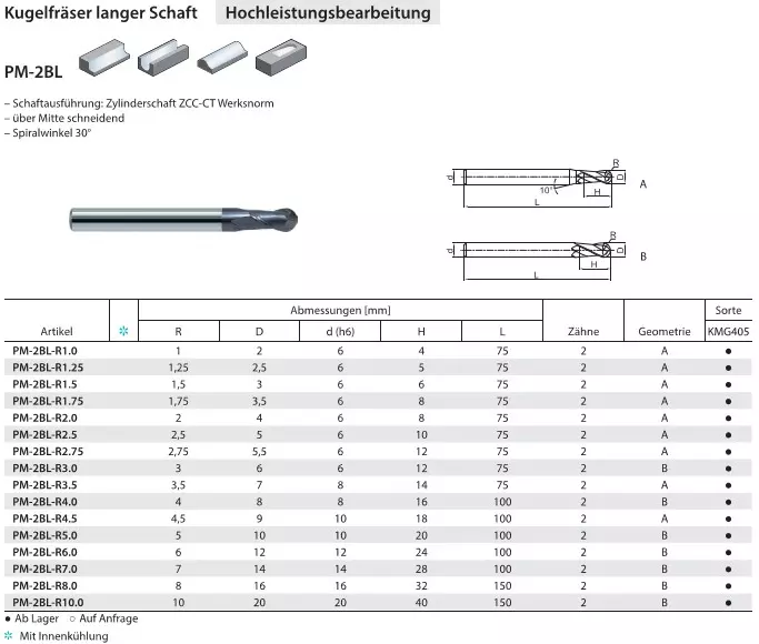 Produktinformationen "ZCC-CT VHM-Kugelfräser 2S. R2.5mm lang Stahl und Guss"
