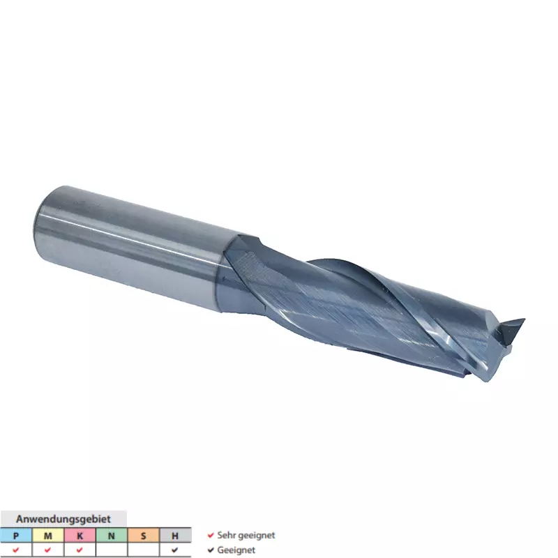 VHM Schaftfräser EPM-2E- WeldonSchaftausführung Zylinderschaft ZCC-CT WerksnormWeldonaufnahmeFür dich Hochleistungbearbeitung2- Schneiderüber Mitte schneidendSpiralwinkel 30°Keine Innenkühlung