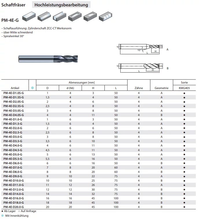 Produktinformationen "ZCC-CT VHM Schaftfräser PM-4E-D7.0-G KMG405"